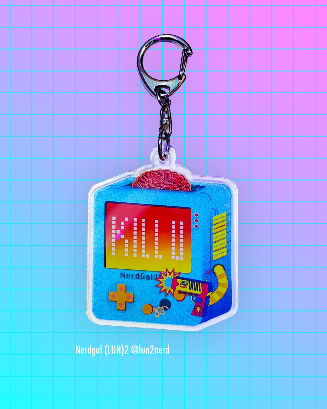 筐体部分がクリアになっている、サイバーでかわいいキーホルダーです。