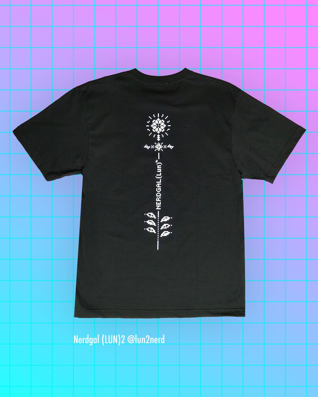 基板を思わせるピクセルアートな花畑と、酸性雨に溶かされる悲哀が共存する、ノスタルジックかつサイバーパンクなデザインです。