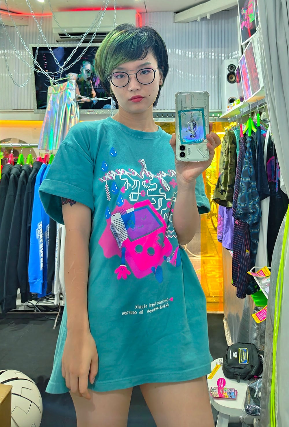 サブカルチャー、サイバーパンク、ナード系ファッションにぴったりな1枚。