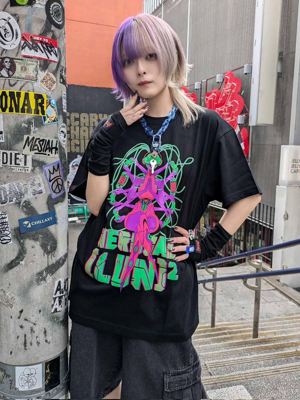 サブカルチャー、サイバーパンク、ナード系ファッションにぴったりな1枚。