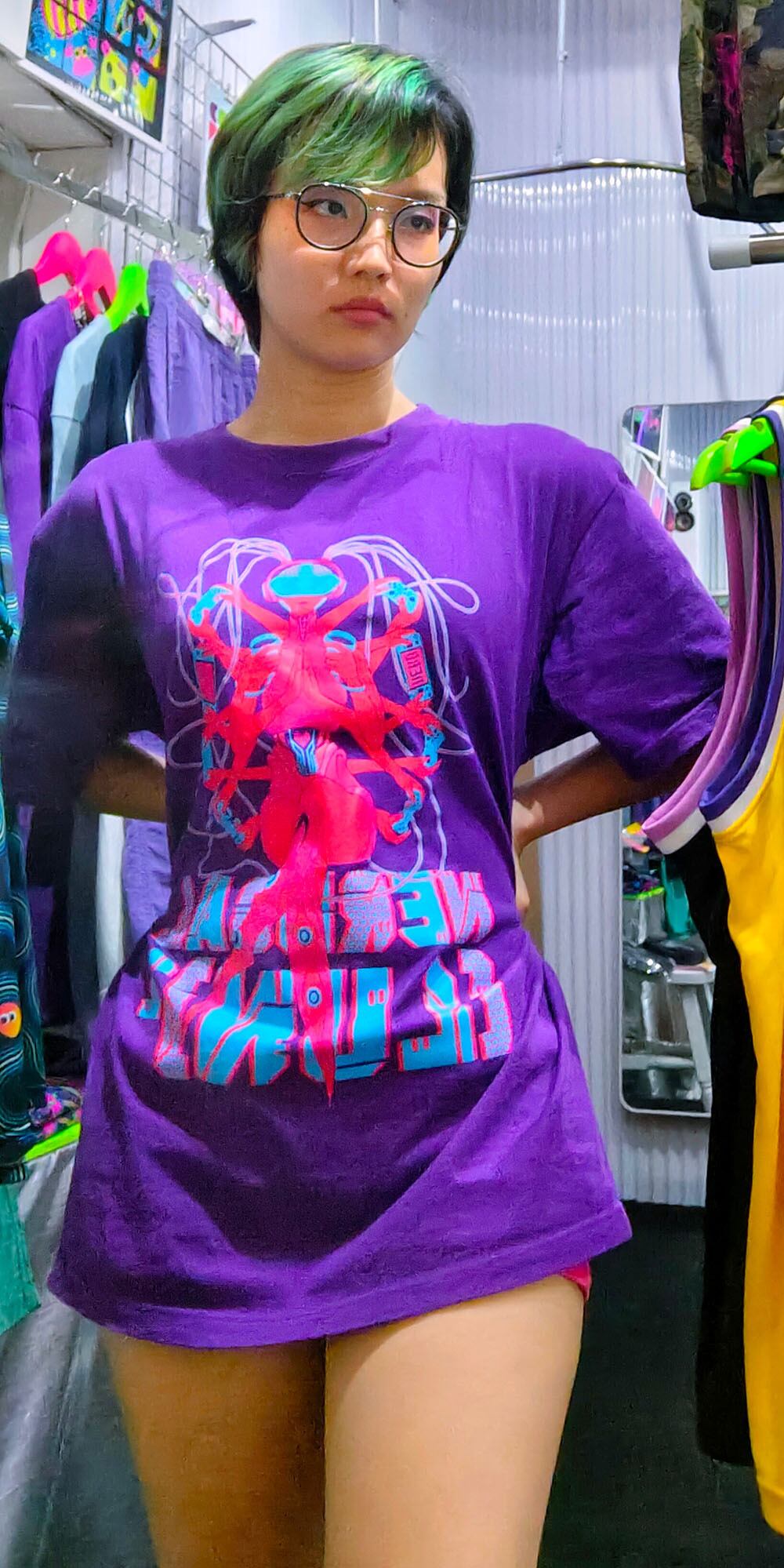 サブカルチャー、サイバーパンク、ナード系ファッションにぴったりな1枚。