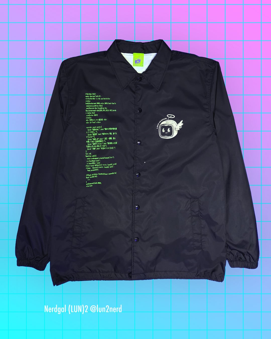ブラックライト対応の高発色ラバープリントが映える、防風・軽量なコーチジャケットです。