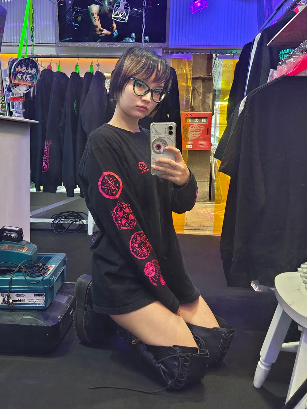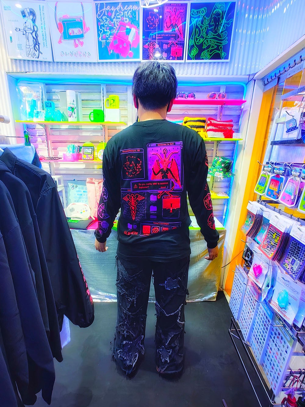 サブカルチャー、サイバーパンク、ナード系ファッションにぴったりな1枚。