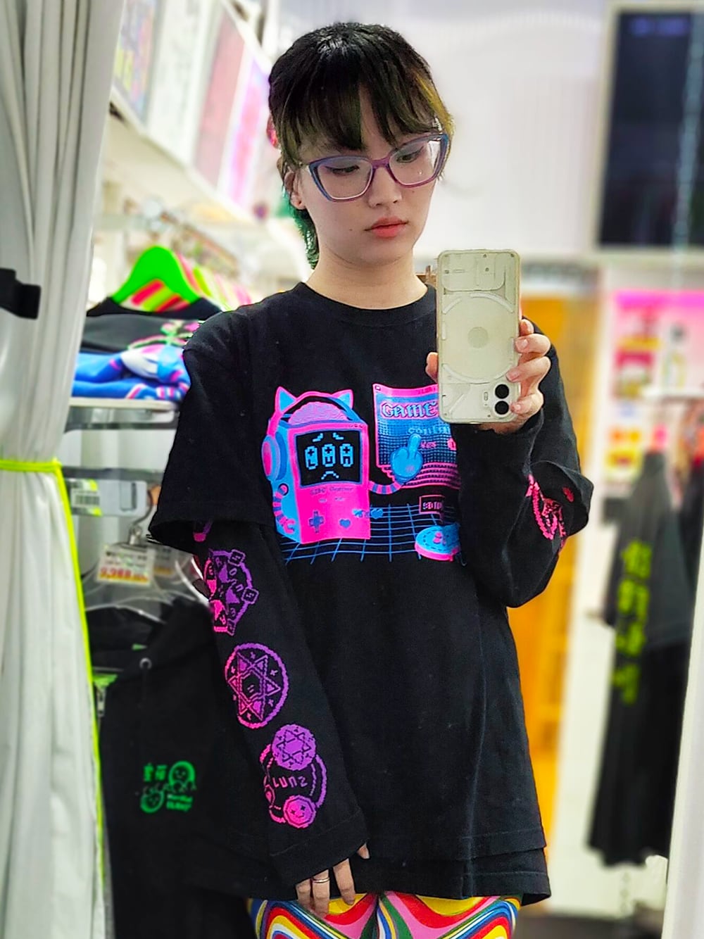 サブカルチャー、サイバーパンク、ナード系ファッションにぴったりな1枚。