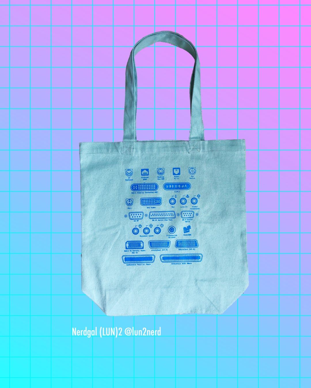 ガジェット好きにはたまらない、80年代のパソコンのいろんなポートや端子をデザインに落とし込みました。