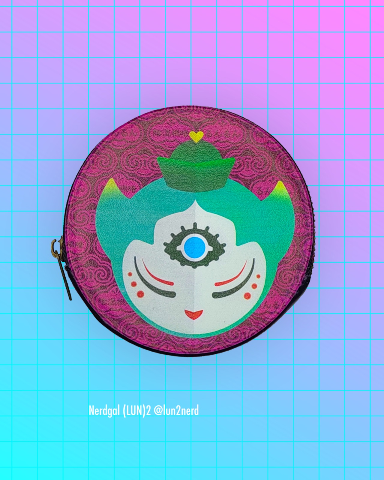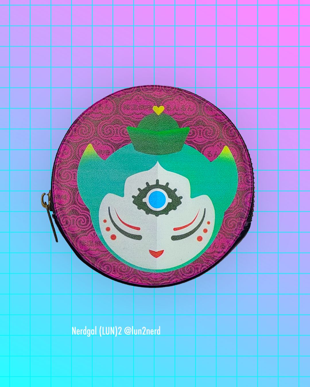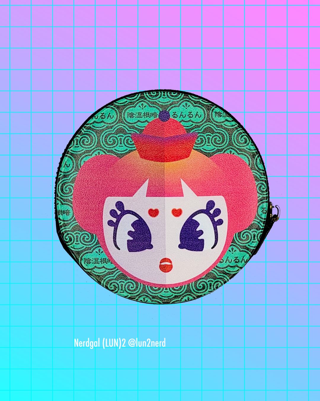 表と裏にチャイナーズのドーリーフェイスが施された円形のコインケースです。