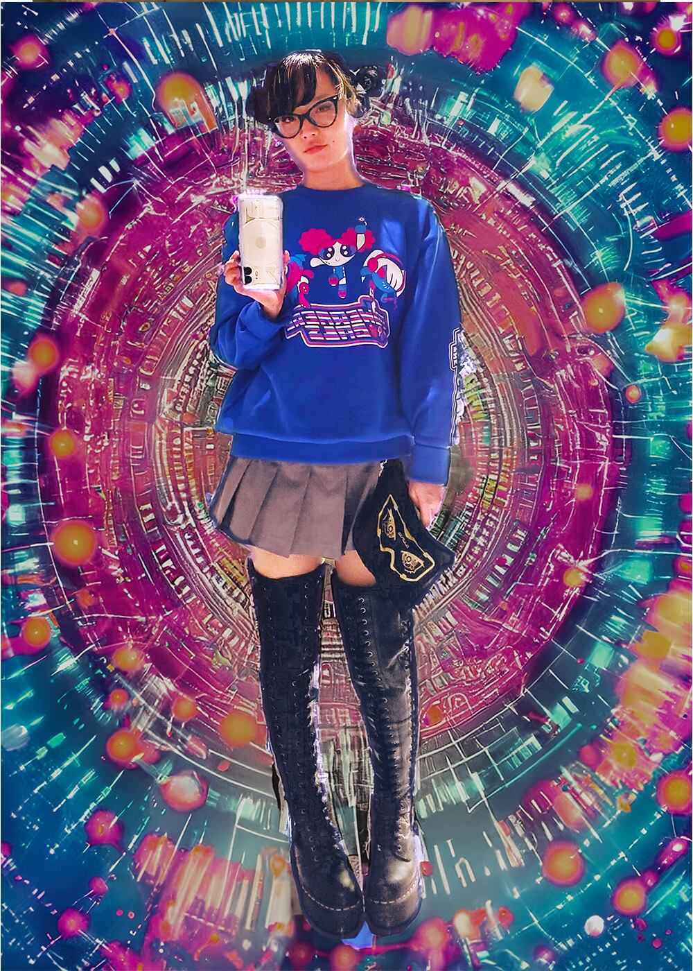 サブカルチャー、サイバーパンク、ナード系ファッションにぴったりな1枚。