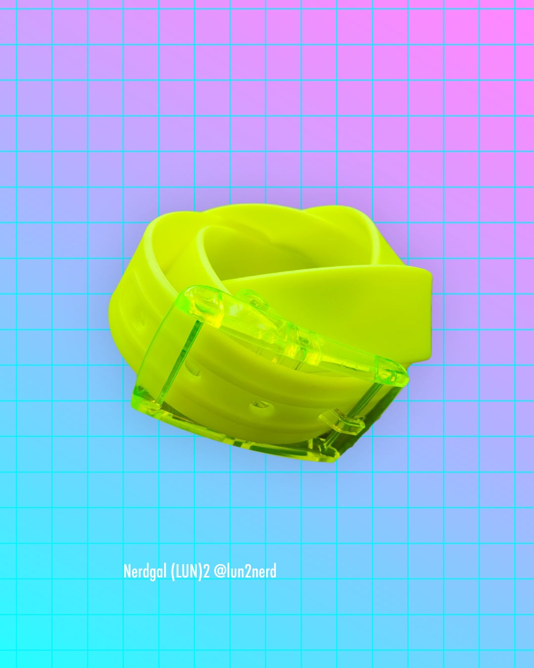 ネオンでマットな質感はカジュアルファッションにはもちろん、少しドレッシーな装いにも程よいサイバーパンク感を演出してくれます。
